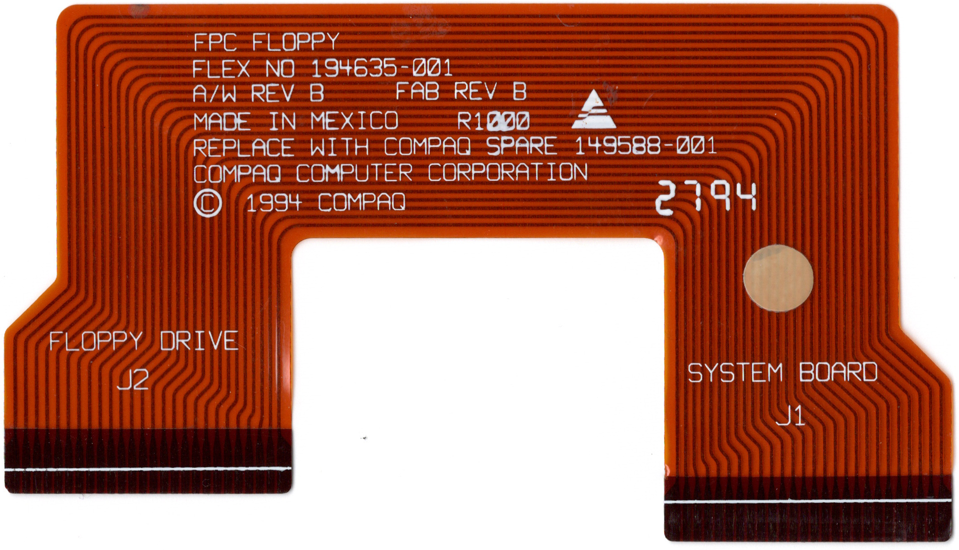 This is a recreation of the Compaq FPC ribbon 194635-001 (or 149588-001) used in Compaq laptops of the mid 90s. They have a tendency to tear in the inner corners when removing drives and it's not really possible to repair them.